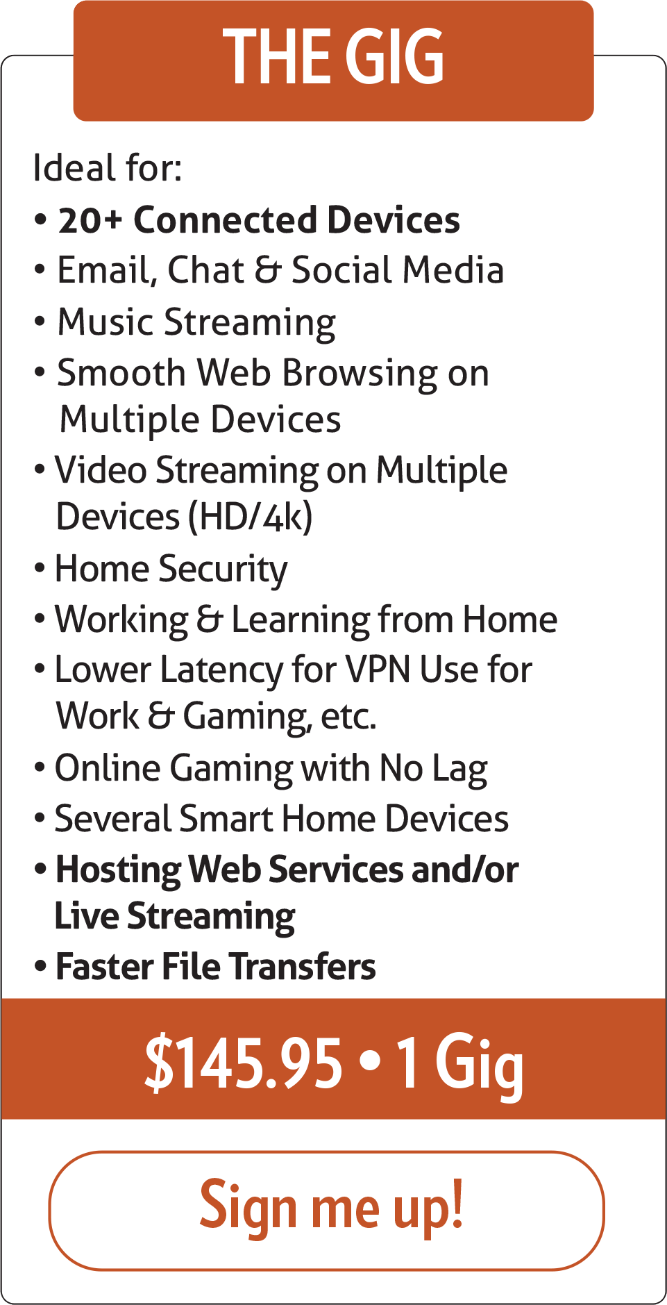 •Home Network Security with all Gigaspire Routers •Symmetrical Speeds with Fiber Service